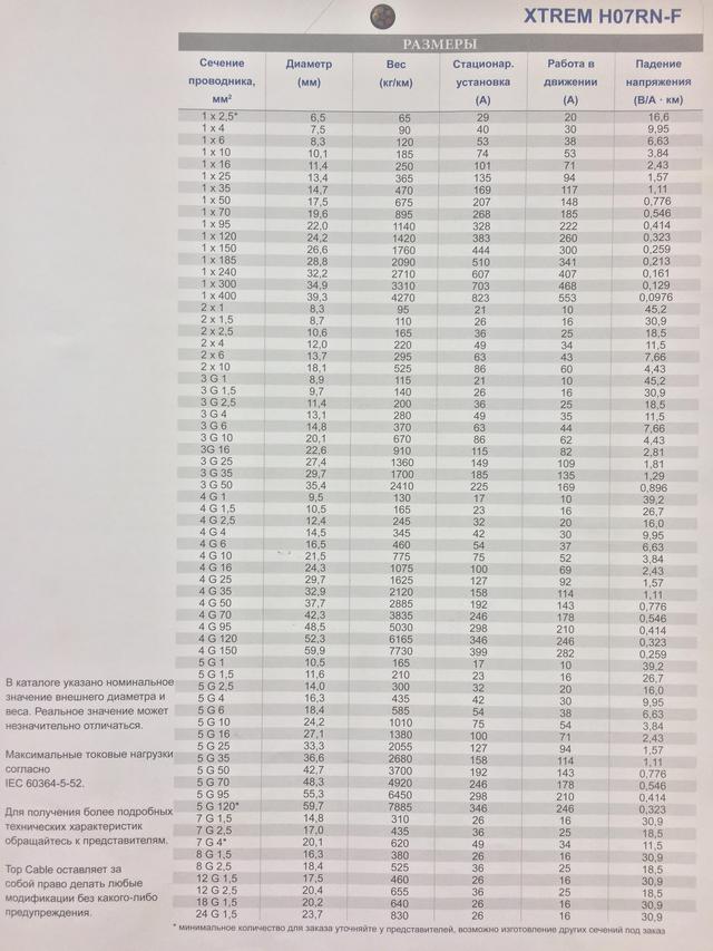 НАПРУГА: 450/750 В - при рухомому з'єднанні, 0,6/1 кВ - при стаціонарному підключенні.